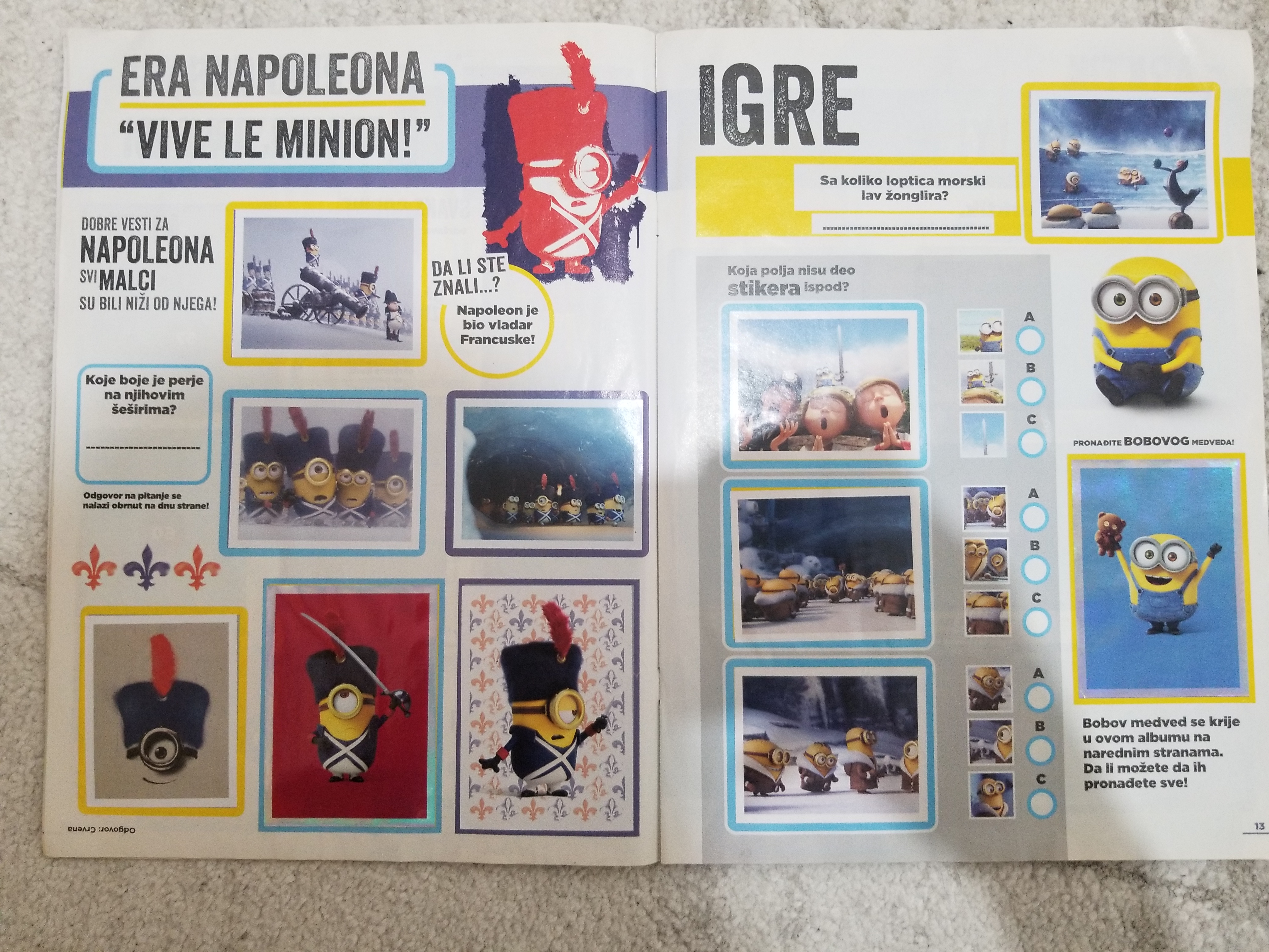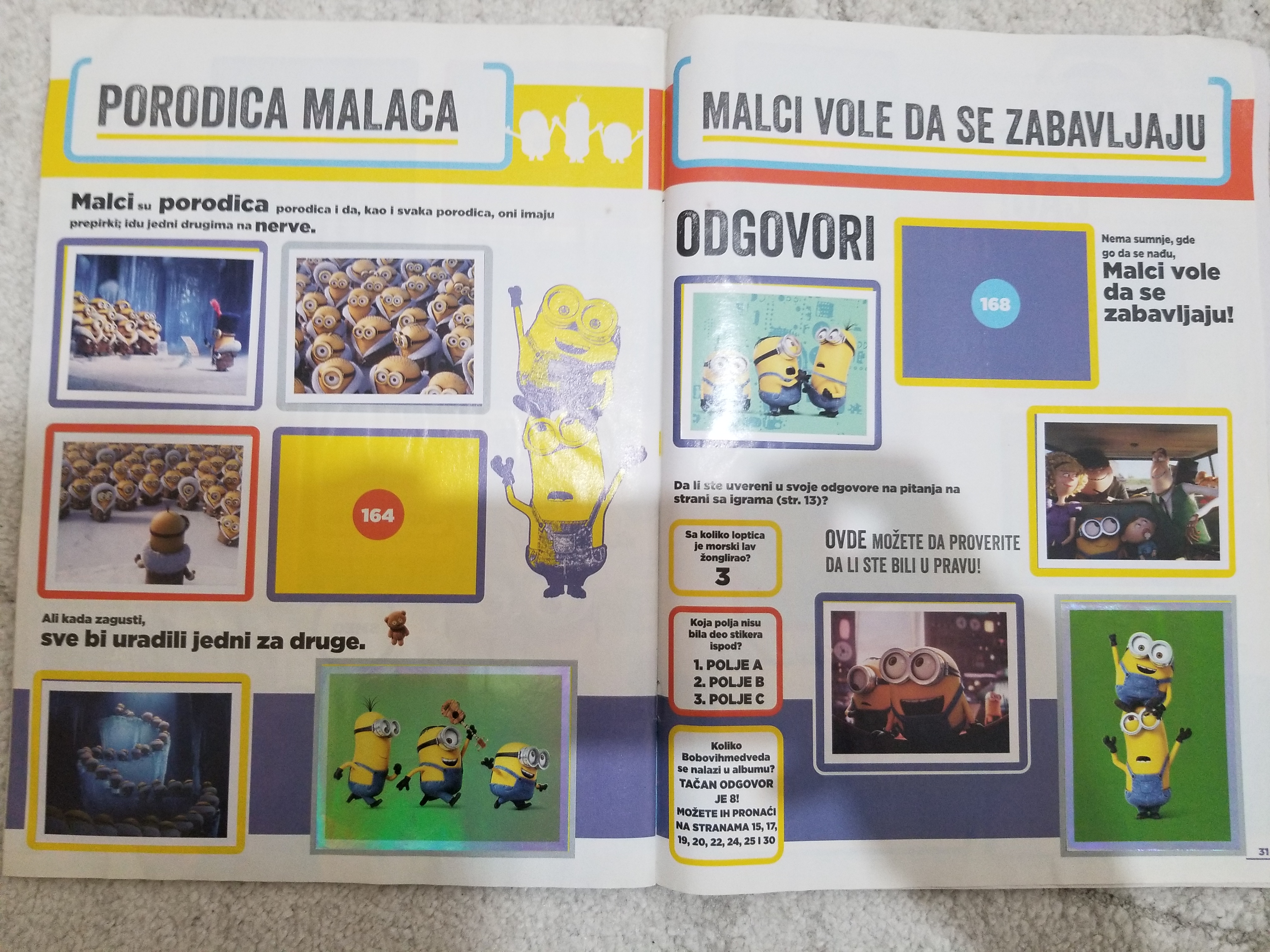 Minions Malci - Album u super stanju, fale 24 slicice od 178 - 1300 dinara. Licno preuzimanje u Novom Sadu ili slanje postom