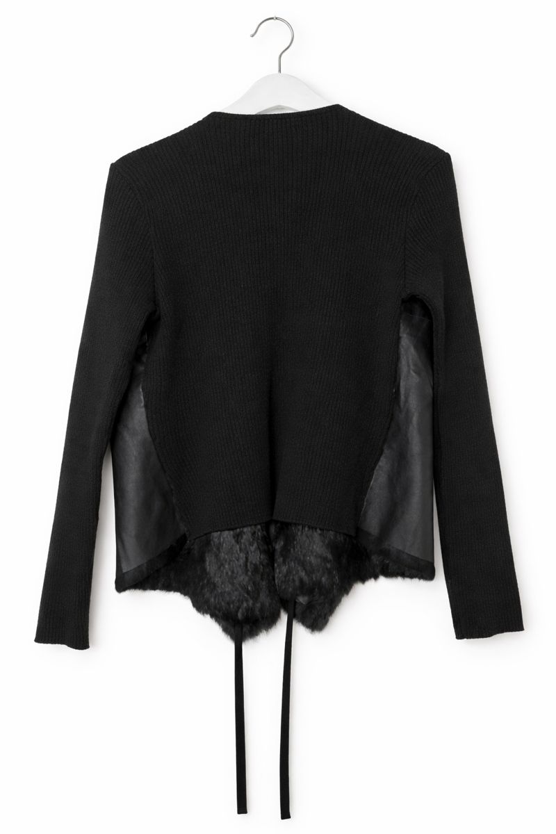 AMAYA ARZUAGA crni kardigan – vuna, koža i prirodno krzno zeca, S/38